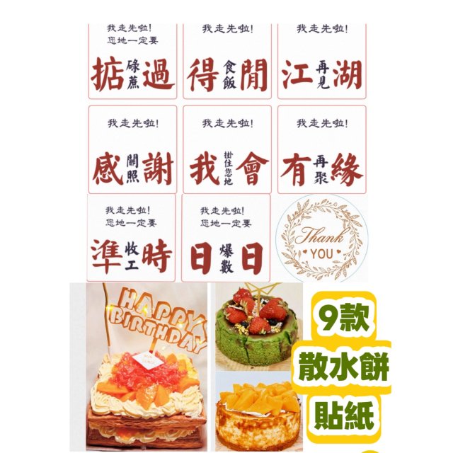 👉👉👉免費9款貼紙任選 👈👈👈 每件蛋糕都會可貼上散水餅貼紙 (如客戶有需要)